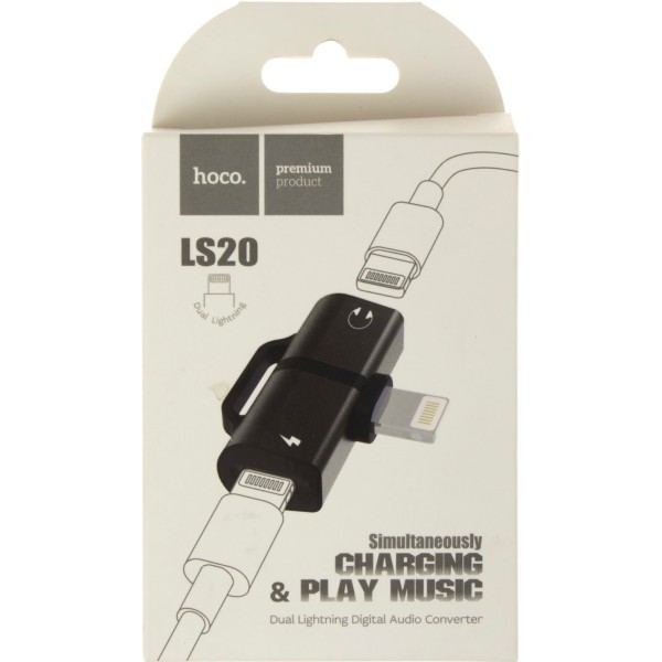 Адаптер перехідник lightning > lightning power та lightning audio Hoco LS20 black Breidon