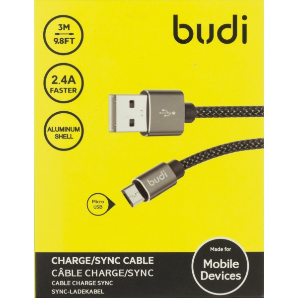 Кабель USB > microUSB Budi 2.4A 3м №DC206M/M8J206M09-BLK