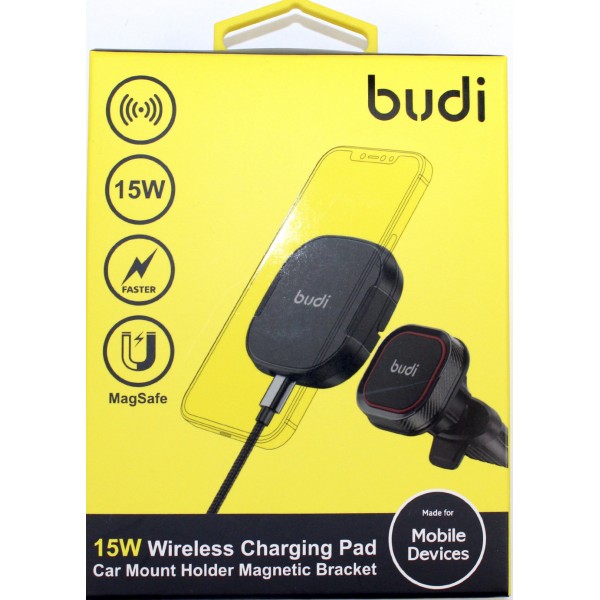 Зарядний пристрій індукційний авто Budi №WL3800XB 15W швидка зарядка,магн. тримач/Breidon/