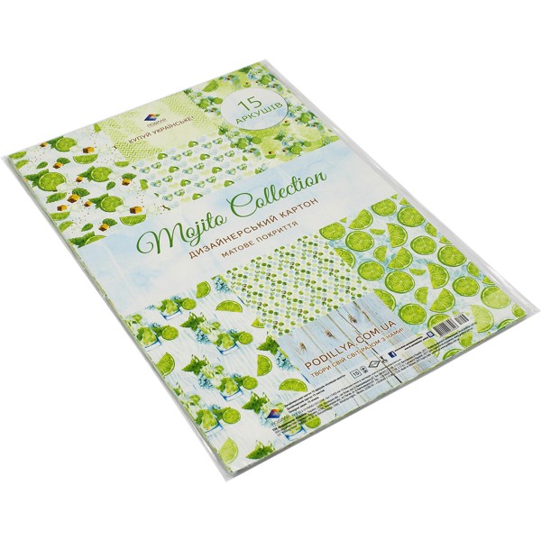 Набір картону дизайнерського А4 15 аркушів Мохіто (110) 17455 Поділля