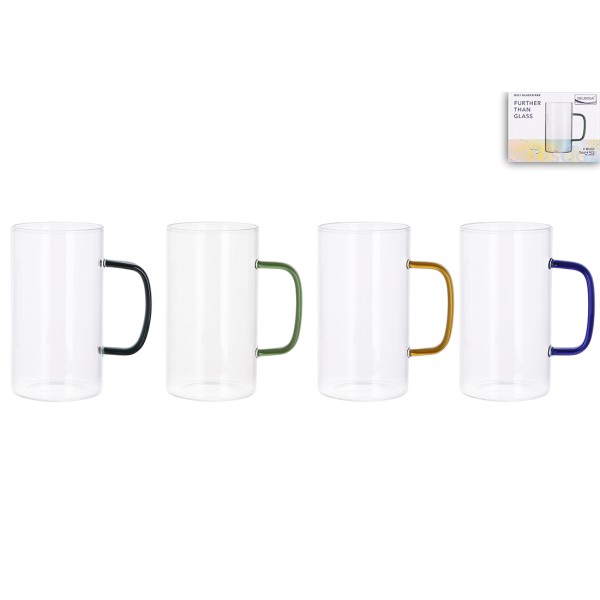 Чашка скло 500мл з кольоровою ручкою №992-009/Bonadi/(4)(72)