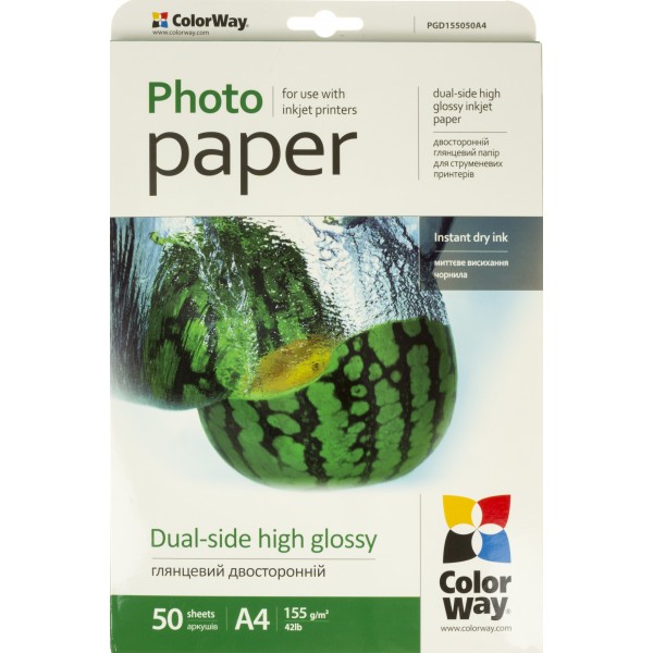 Фотопапір "CW" А4 155г/м глянц. 2х-стор. №PGD155-50/PGD155050A4/3780(50)