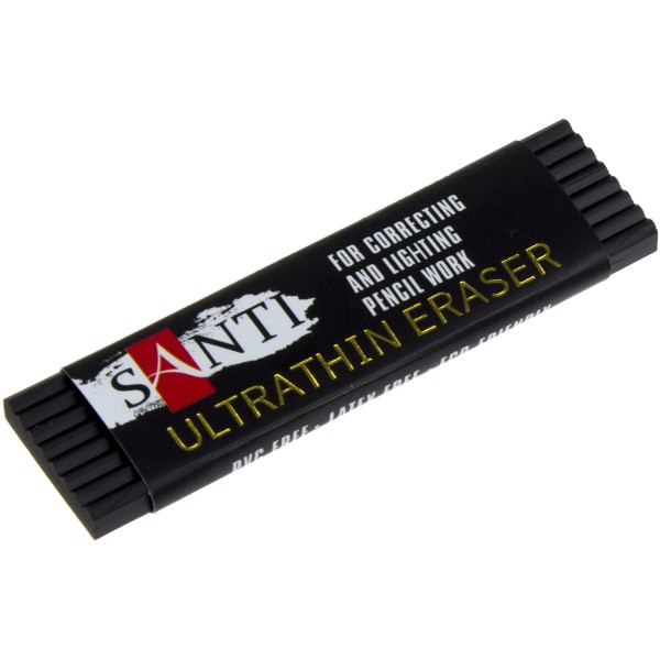 Ультратонка професійна гумка SANTI для грифелей і кольорових олівців має ергономічну форму і не залишає слідів на папері після стирання. За рахунок ультратонкой межі зручна при виділенні дрібних деталей і тонких ліній. Завдяки індивідуальній упаковці ластик не брудниться та більш зручний у використанні.