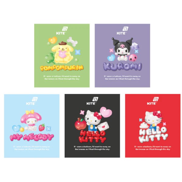 Зошит 24арк. кліт. "Kite" фольга + УФ лак об'ємний Hello Kitty Mix №HK26-238-2(20)(320)