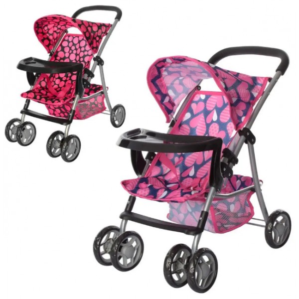 Коляска для ляльок металева 4 колеса, передні поворотні, козирок, кошик, столик (4) 9304BWT/025
