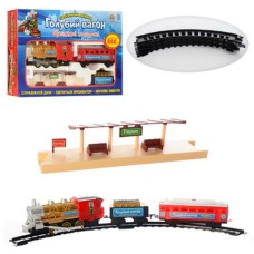 Залізниця на бат-ці,42дет.,локомотив,вагон 2шт,знаки,дерева,на бат-ці,в кор-ці №1628-2(10)