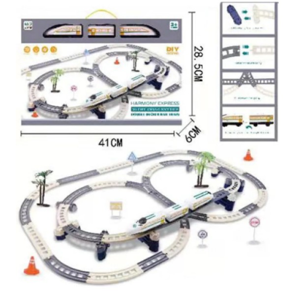 Залізниця на бат-ці,42дет.,локомотив,вагон 2шт,знаки,дерева,на бат-ці,в кор-ці №1628-2(10)