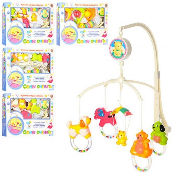 Карусель на ліжечко муз.,5 видів,в кор-ці,32х25х5см №M1177U/R(36)