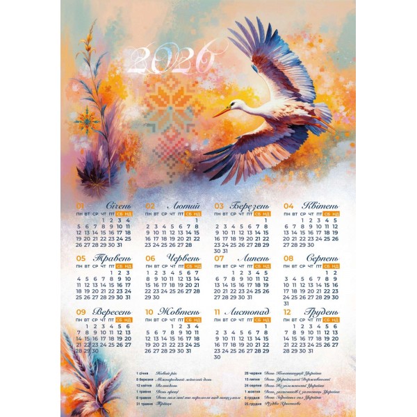 Календар А2 верт двосторонній "Лелека/Капучіно" 2026
