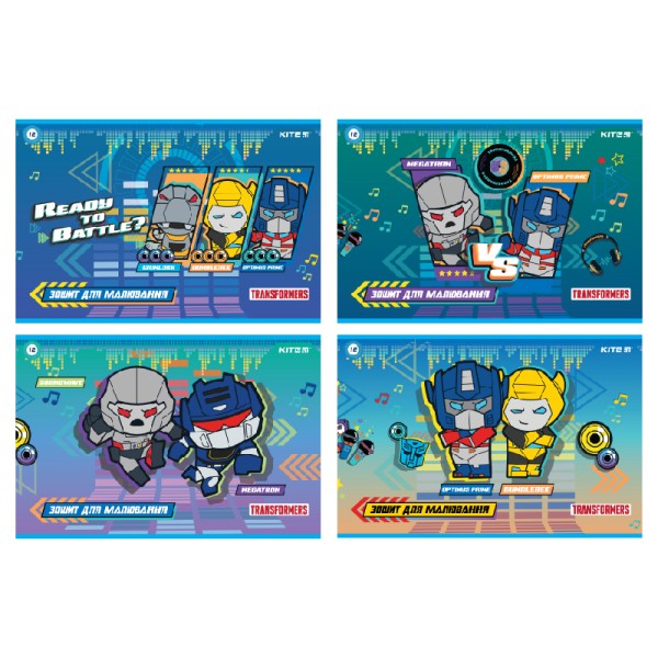 Зошит для малювання на скобі 12/100 A4 Transformers софт тач УФ лак Kite (20) (160) №TF22-241