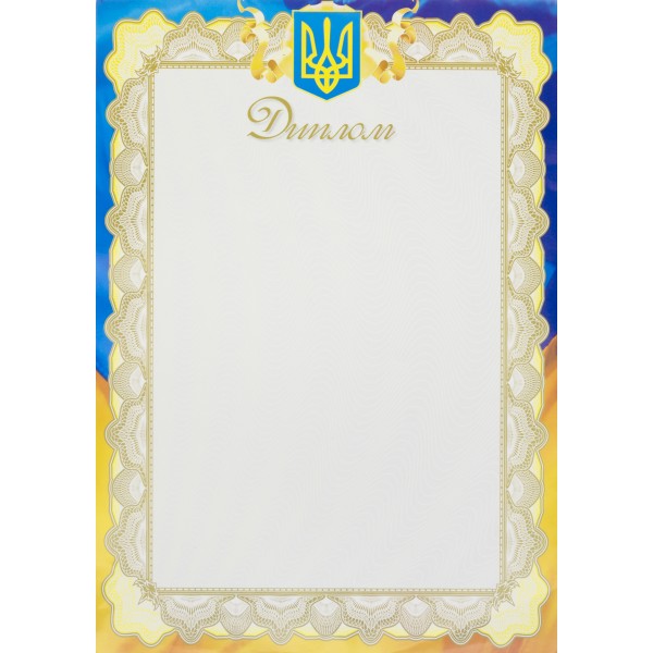 Диплом А4 білий фон, блакитний герб, рамка-прапор Аркуш (100) 9