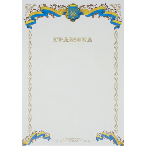 Грамота А4 білий фон, стрічка, тризуб, геральдика Аркуш (100) 3