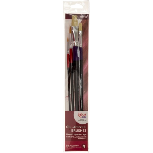 Набір пензлів 4шт "Rosa Studio" №186124 щетина (6,10)синтетика(2,6)