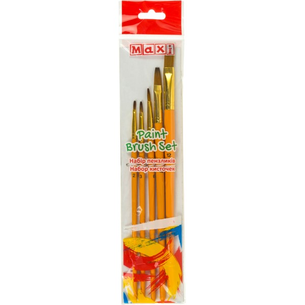 Набір пензлів 5шт "Maxi" №MX60876 синтетика (пласкі 2,3,6,10,12) коротка ручка