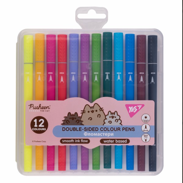 Фломастери двосторонні "Yes" 12кольор. "Pusheen" №650573(12)(72)