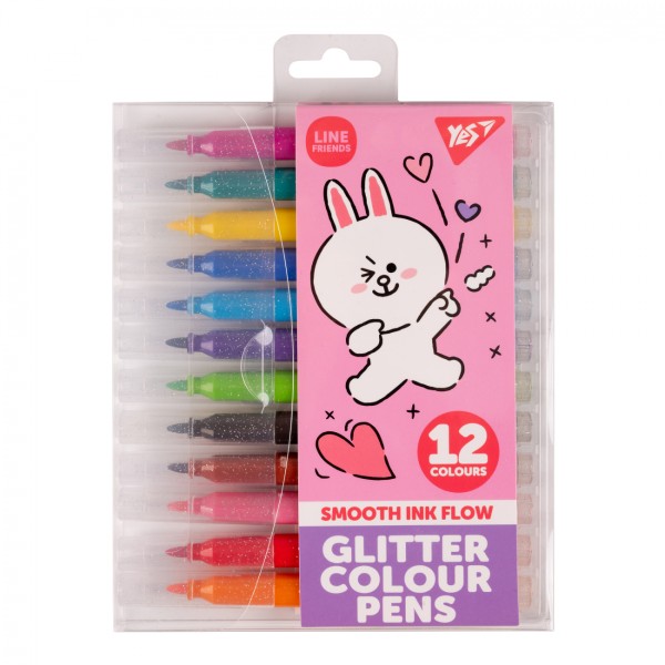 Фломастери "Yes" 12кольор. "Line Friends" глітер №650559(12)(72)