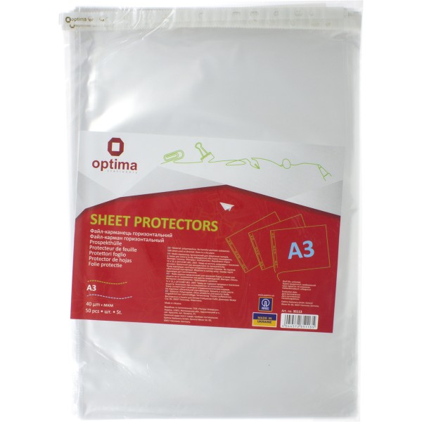 Файл А3 Optima 40мкм горизонтальний глянцевий 50шт в пачці (25 пачок/ящик) O35113