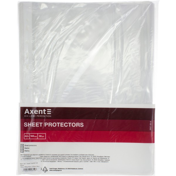 Файл А4+ Axent 30мкм глянцевий 100шт в пачці (20 пачок/ящик) 2007-00