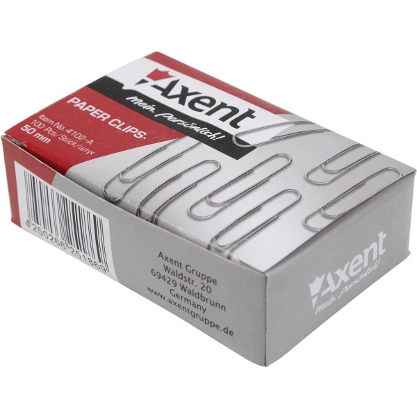 Скріпки 50мм Axent круглі нікельовані 100 шт (10) (20) (100) 4102