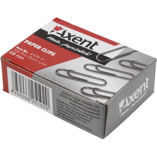 Скріпки 28мм Axent круглі з загином нікельовані 100 шт (20) (240) 4104