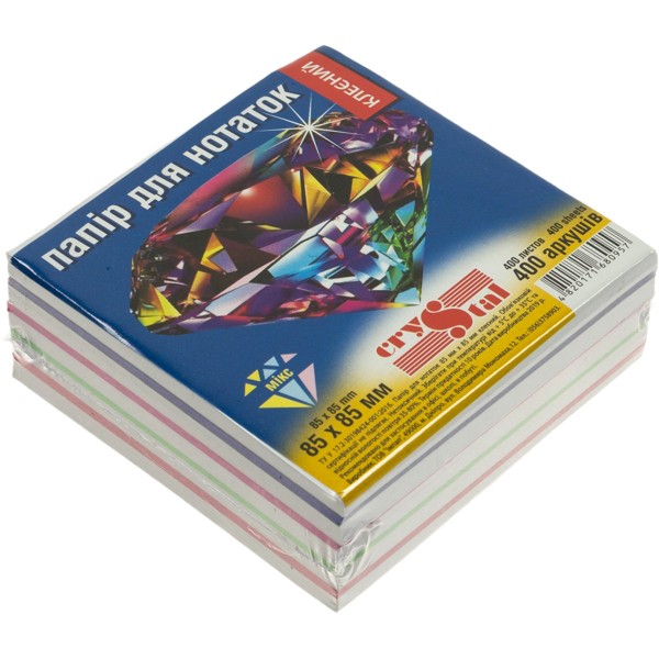 Блок для заміток клітинка 85х85мм 400 аркушів Crystal мікс (40)