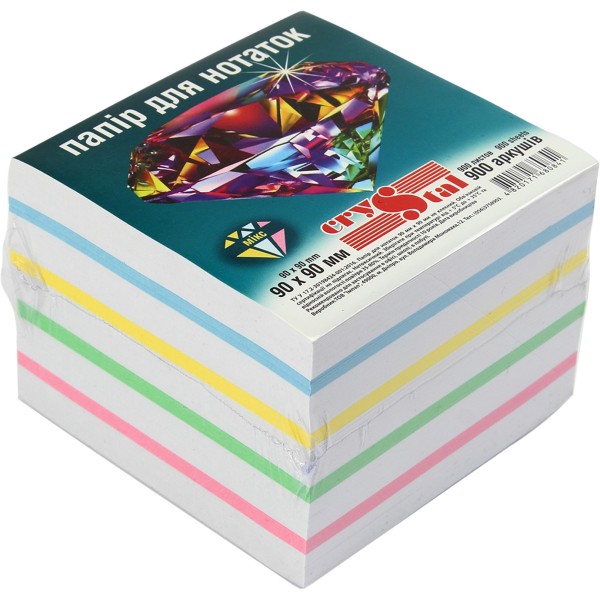 Блок для заміток неклеєний 90х90мм 900 аркушів мікс, 5 кольорів Crystal (16) 0841 Блок для заміток неклеєний 90х90мм 900 аркушів мікс, 5 кольорів Crystal (16) 0841 Блок для заміток неклеєний 90х90мм 900 аркушів мікс, 5 кольорів Crystal (16) 0841