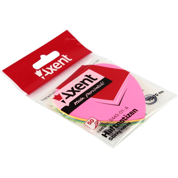 Блок для заміток з липким шаром 70х70 мм 50 аркушів серце Axent (1) (24) 2443-01