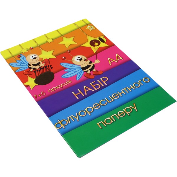 Набір флуоресцентного паперу А4 12 аркушів Тетрада Набір флуоресцентного паперу А4 12 аркушів Тетрада