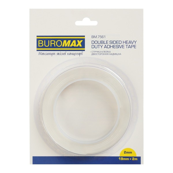 Стрічка двостор. клейка "Buromax" 19ммх2мх2мм акрил-гелева,прозора №7561(72)
