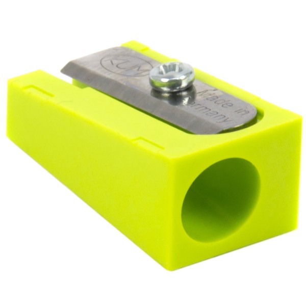 Пластикова точилка KUM з клиноподібним корпусом. Надгострі вигнуті леза з легкістю заточують будь-які олівці, навіть олівці поганої якості. Корпус з первинного пластику дуже міцний, виконаний максимально точно. Леза захищені від іржі. Асорті Pop кольорів: салатовий, блакитний, рожевий.