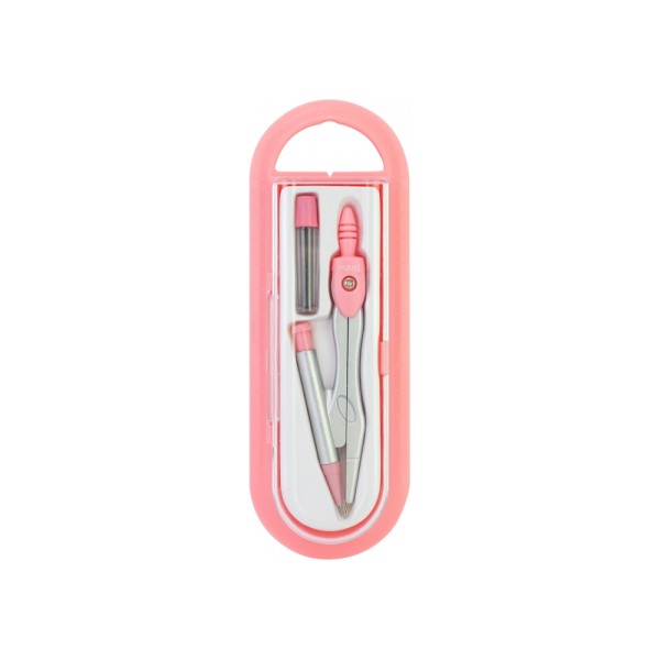 Циркуль "Maxi" 2предм. пенал з лінійкою по периметру, пастельний рожевий №MX81472(12)