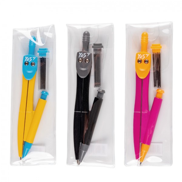 Циркуль "Yes" у прозорому чохлі з механічним олівцем та запасними грифелями №220092