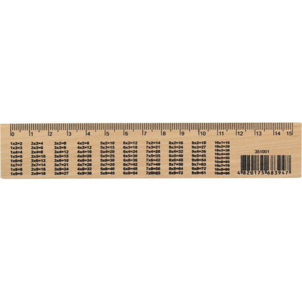 Лінійка дерев'яна предметна 15см (таблиця множення) (100) 351001