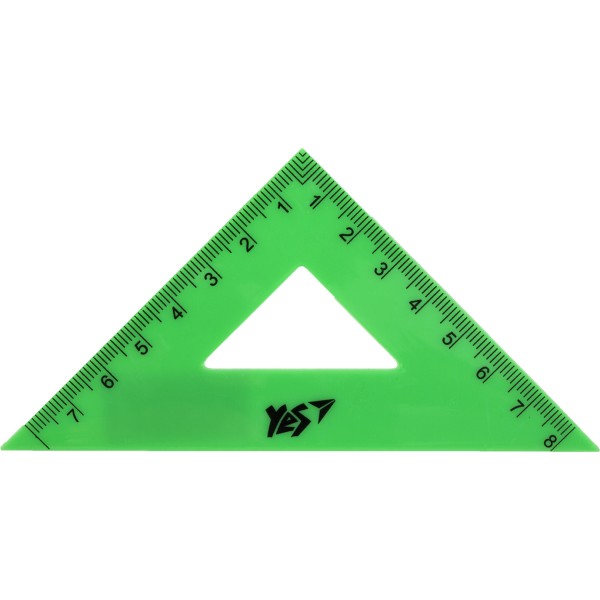 Рівнобедрений трикутник з пластику яскравих неонових кольорів. Довжина - 8х8 см, внутрішні кути: 45/45/90 градусів. Призначений для створення креслень, а також для точного вимірювання лінійних розмірів й інших геометричних параметрів.