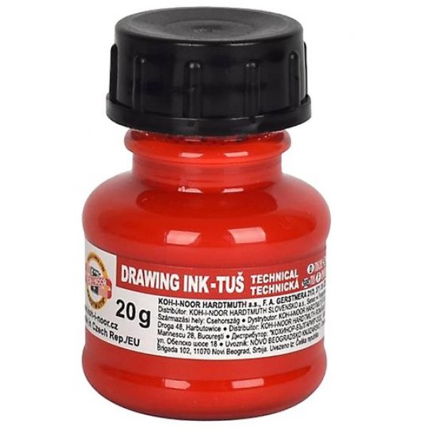 Туш для креслення KOH-I-NOOR, на водній основі, пластиковий флакон 20г,червона