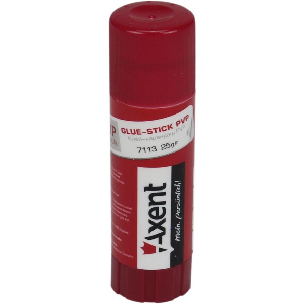 Клей-олівець заслужив свою популярність у школі, офісі і вдома, завдяки простоті у використанні, економічності, зручності нанесення, транспортування і швидкості висихання. Клей-олівець Axent PVP використовується для склеювання паперу, картону, фотографій. PVP склад не містить розчинників, морозостійкий. Легко наноситься і швидко сохне. Термін придатності 24 місяці. Обсяг 25г.