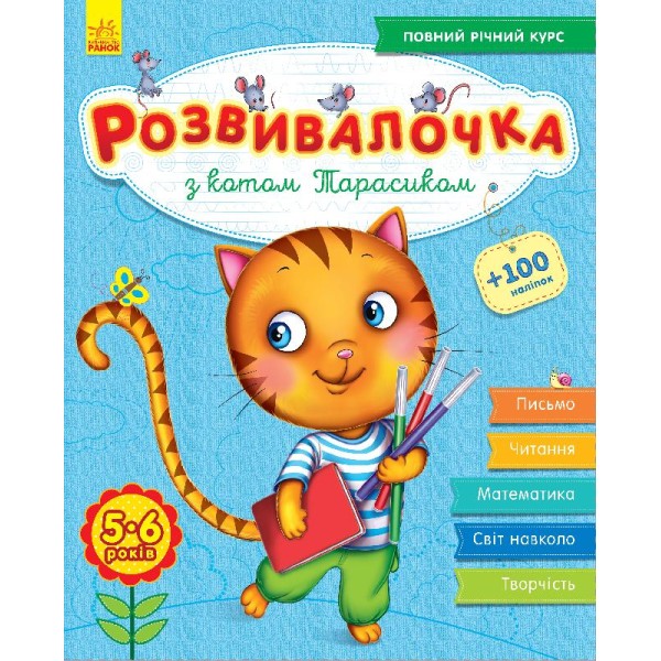 Книжка А4 Розвивалочка: З котом Тарасиком 5-6 років 100 наліпок (українською) /Ранок/ (10) 7360