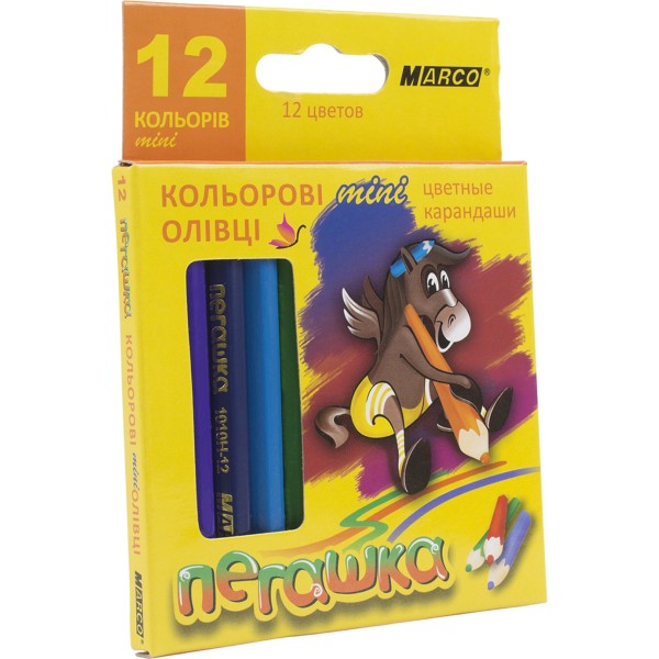 Олівці кольорові 12 кольорів Marco Пегашка короткі (12) (240) 1010-12Н/1010H-12CB