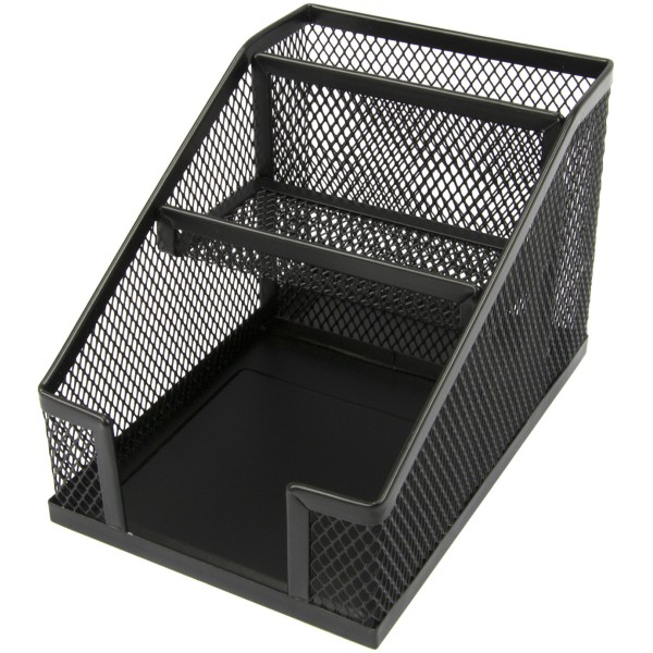 Порядок на столі - порядок у справах. Підставка-органайзер Axent - ще один офісний аксесуар, щоб підтримувати порядок на робочому столі - дозволяє естетично і зручно розмістити паперові блоки і канцелярське приладдя. Складається з 3-х відділень. Підставка-органайзер з металевої сітки органічно і невагомо виглядає на будь-якому робочому столі. Міцний матеріал, якісне фарбування і обробка країв, суцільнометалеве дно забезпечують акуратний зовнішній вигляд протягом довгого часу. Підставка-органайзер з металевої сітки може стати доповненням до інших настільних аксесуарів Axent з цієї серії.