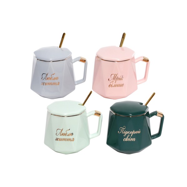 Чашка-заварник керам. 420мл "Люблю життя" з кришкою і ложкою №927-219/Bonadi/(1)(24)