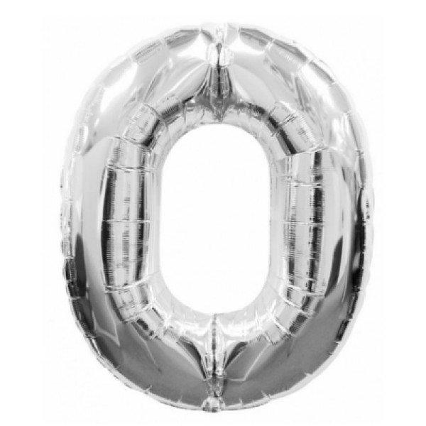 Кулька повітряна фольгована 40"/106см Цифра-0 срібло (10)