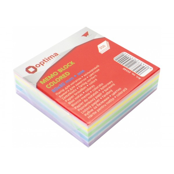 Блок/зам. нкл 80х80мм 250арк. кольор. Люкс "Optima" №O25540