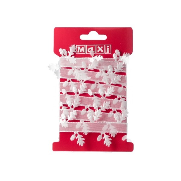 Стрічка декор. 1м з листочками,біла №BJ21-05016