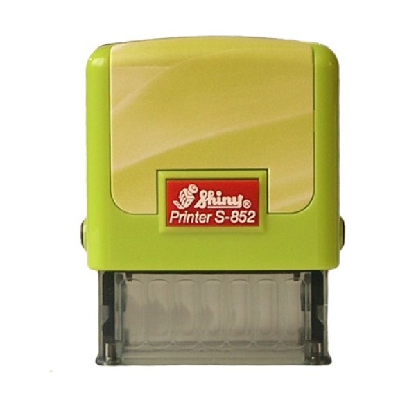 Оснастка пластикова для штампа, розмір поля 14х38мм. Головною особливістю оснастки є наявність змінної пластикової панелі, яку можна використовувати для розміщення індивідуального фірмового стилю. Комплектується штемпельною подушкою S852-7 синього кольору. Змінна подушка буває синього, фіолетового, чорного, червоного, зеленого кольорів і незабарвлена.