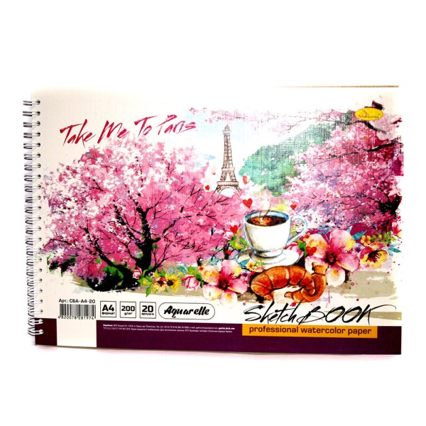 Скетчбук пруж. 20арк. А4 "Акварельний" №АП-0203/Апельсин/(16)