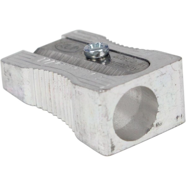 Металева точилка KUM з корпусом з магнієвого сплаву. Надгострі вигнуті леза з легкістю заточують будь-які олівці, навіть олівці поганої якості. Леза і корпус захищені від іржі. Клиноподібний корпус з виїмками для пальців. Висока точність обробки.
