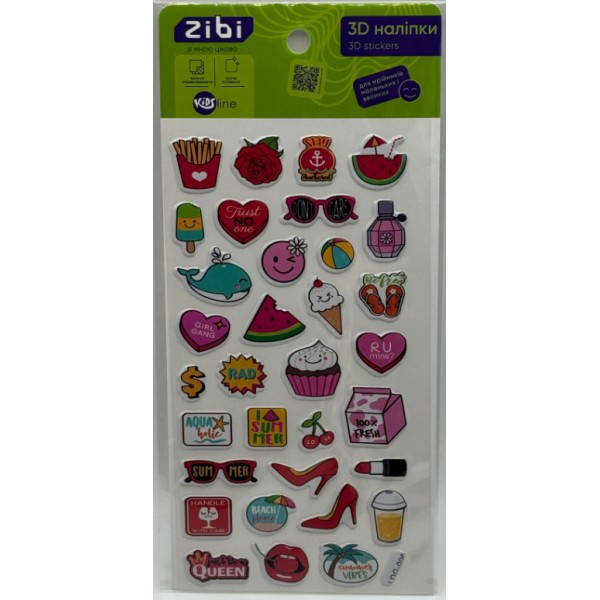 Наліпка 3D "Літній мікс для дівчат" 18см, KIDS Line №ZB.63308/Zibi/(20)
