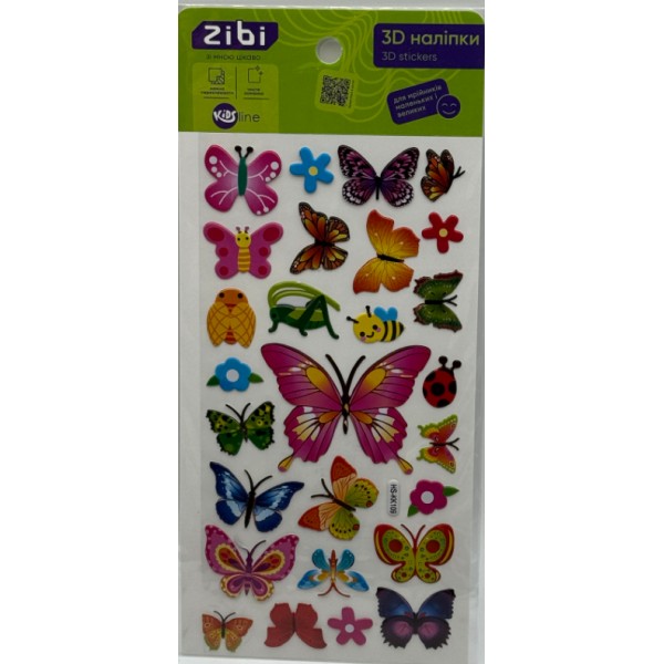 Наліпка 3D "Метелики мікс" 18см, KIDS Line №ZB.63370/Zibi/(20)