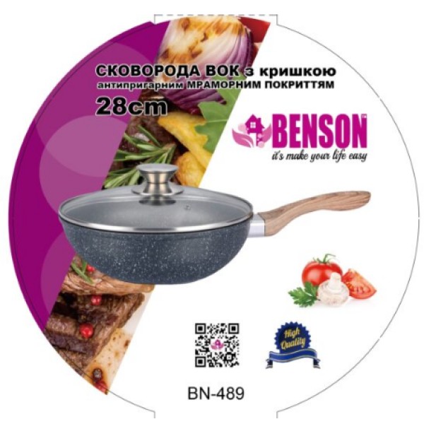 Сковорідка-вок алюм. мармур. покриття "Benson" 28см з кришкою №BN-489