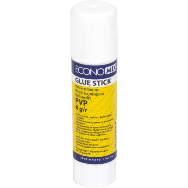 Клей-карандаш Economix 8 гр перманентный, белый PVP (24) (576) Е41218